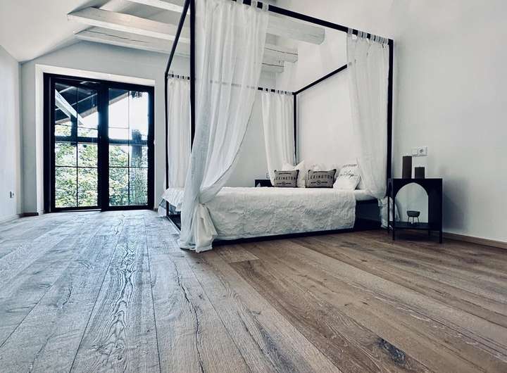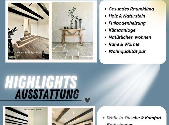 +Im gesamten Haus erwarten Sie Eichen-Massivparkett, Naturstein , sichtbare +Deckenbalken sowie ein stimmiges
