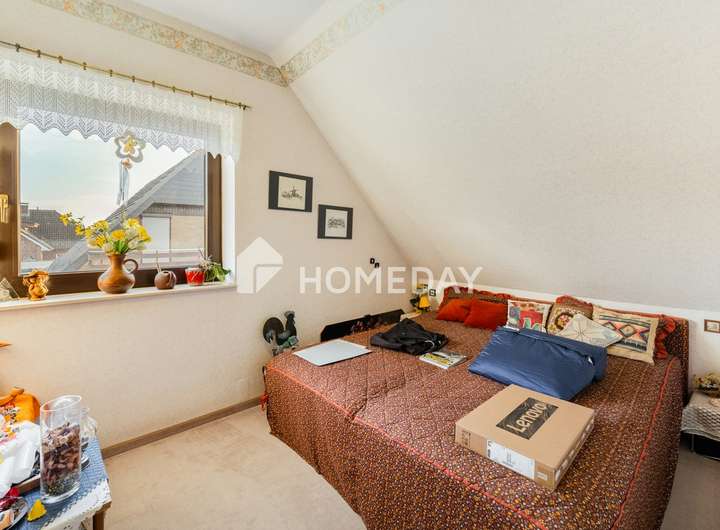 Raum für die ganze Familie Im Obergeschoss erwarten Sie vier helle und geräumige Zimmer, die sich flexibel als Schlaf-, Kinder- oder Arbeitszimmer nutzen lassen. Hier findet jedes Familienmitglied seinen privaten Rückzugsort. Das Hauptbad befindet sich ebenfalls auf dieser Etage.