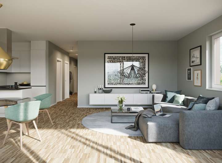 In den Wohnungen der Stadtvillen entsteht ein wertvolles und nachhaltiges Zuhause mit viel Wohn- und Lebensqualität. Klar gegliederte, helle Räume ermöglichen