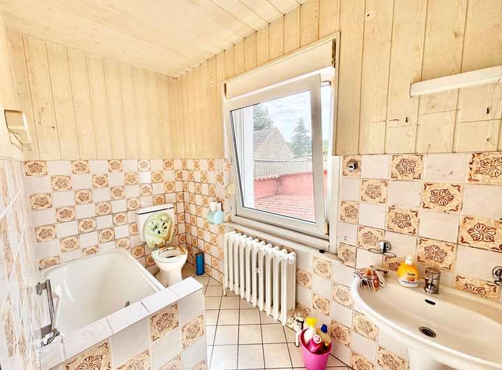 Die Elektrik wurde teilweise erneuert, jedoch ist das Haus insgesamt auf einem Sanierungsbedürftigen Stand. Im Stil der damaligen Zeit gehalten bietet es somit zahlreiche Möglichkeiten, es nach den eigenen Vorstellungen weiter zu gestalten. Die ruhige Lage und das große Grundstück machen dieses Haus zu einem idealen Rückzugsort für Familien, die den Charme eines älteren, aber gut gepflegten Hauses mit viel Potenzial suchen.