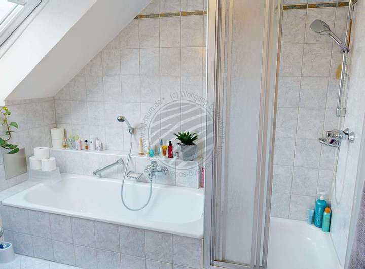 + Bad mit Fenster, WC, Badewanne und Dusche