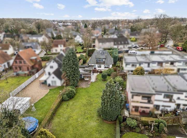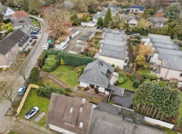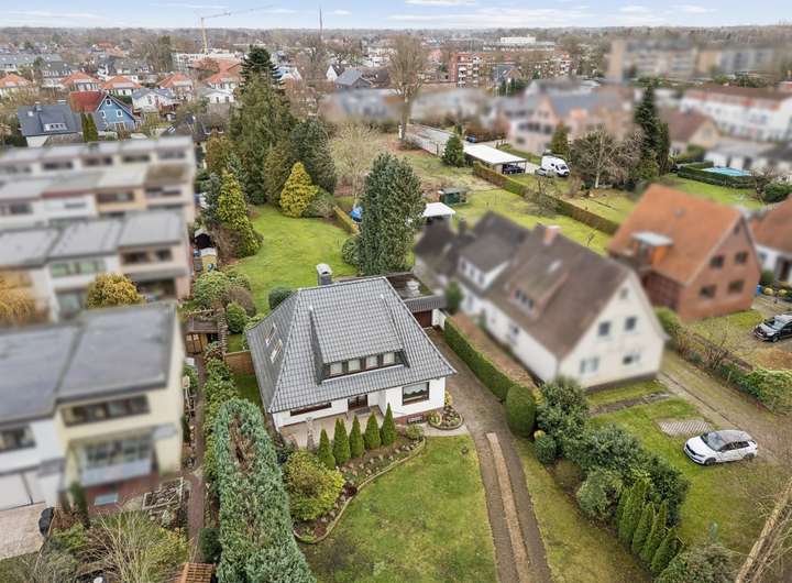Es befindet sich auf einem außergewöhnlich großen Grundstück mit insgesamt ca. 2.006 m² in zentraler Lage von Lilienthal – in einer ruhigen Wohnstraße, die dennoch kurze Wege zu allen wichtigen Einrichtungen bietet.