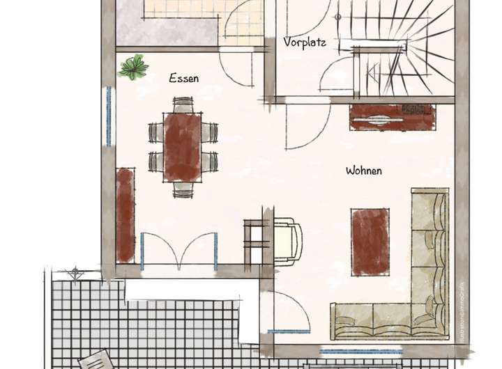 Die Küche wird vom Mieter selbst eingebracht, sodass Sie diese ganz nach Ihren eigenen Bedürfnissen und Vorstellungen gestalten können.