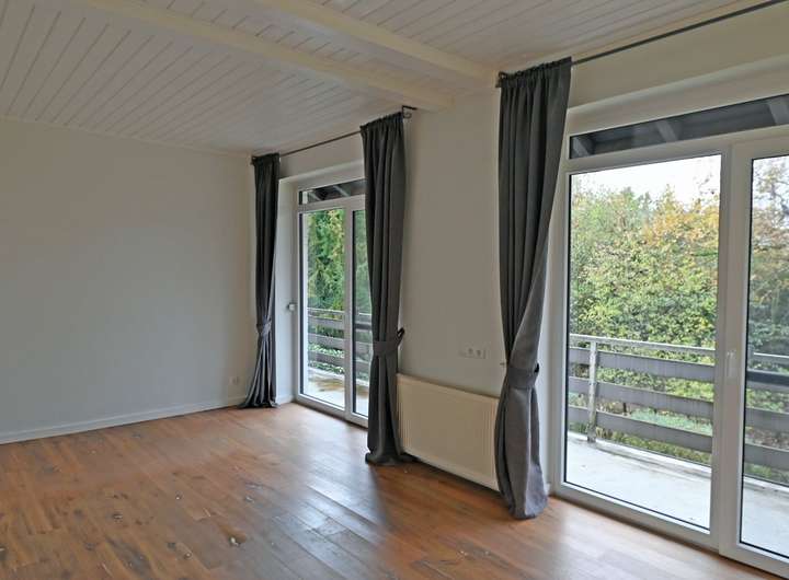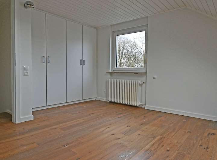 Obergeschoss: Diele, wunderschöner, sehr großzügiger Elternteil mit Balkon und freier Sicht in ganz viel Grün, drei weitere Zimmer, Bad mit Dusche.