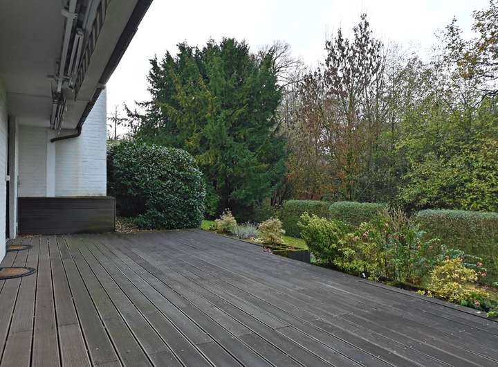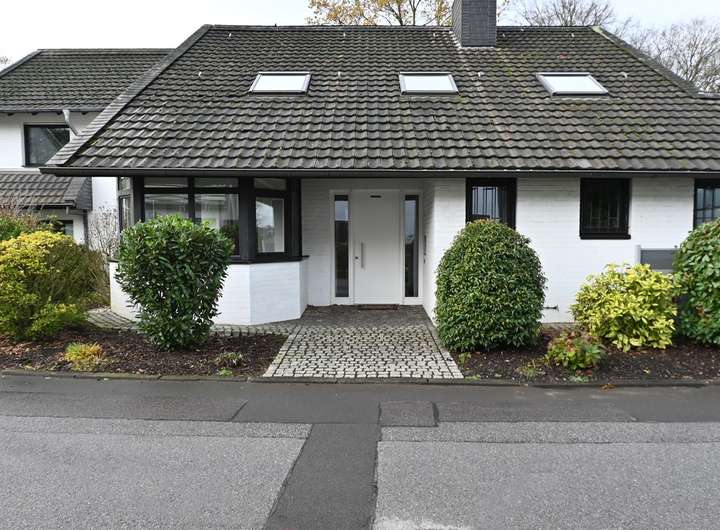 In einer kleinen, ganz ruhigen Sackgasse und unmittelbar angrenzend an einen ausgedehnten Grüngürtel liegt dieses schon von außen sehr ansprechende Haus. Die Nachbarschaft ist ebenso wie das Haus selbst erstklassig! Gepflegte, repräsentative Häuser auf schönen Grundstücken und ein komplett eingewachsenes Umfeld garantieren einen entsprechenden Wohnstandard. Trotz der schon angesprochenen, sehr grünen Umgebung, einem Golfplatz quasi vor der Haustür und Reiterhöfen gleich um die Ecke ist man - anders als man jetzt vermuten könnte - nicht völlig "außen vor". Alle im Alltag benötigten Dinge - Kindergarten, Grundschule, weiterführende Schule, Einkaufsmöglichkeiten, Pizzeria, Bushaltestelle etc. - sind unkompliziert zu Fuß zu erreichen.