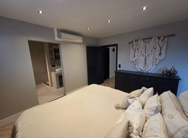 Kunststofffenster mit elektrischen Rollläden (überall), elektrische Screens im Erker, und einer Außen-Markise.