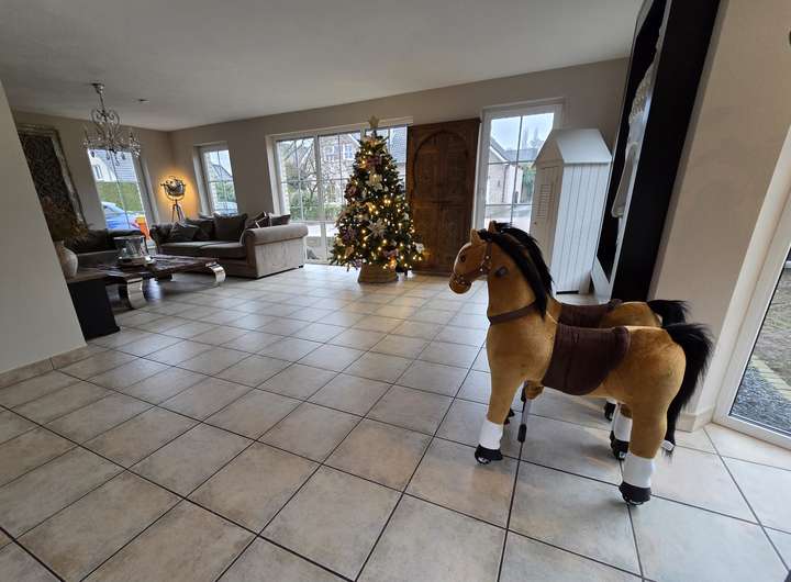 Das Wohnzimmer ist hell und geräumig, und mit bodentiefe Fenster versehen.