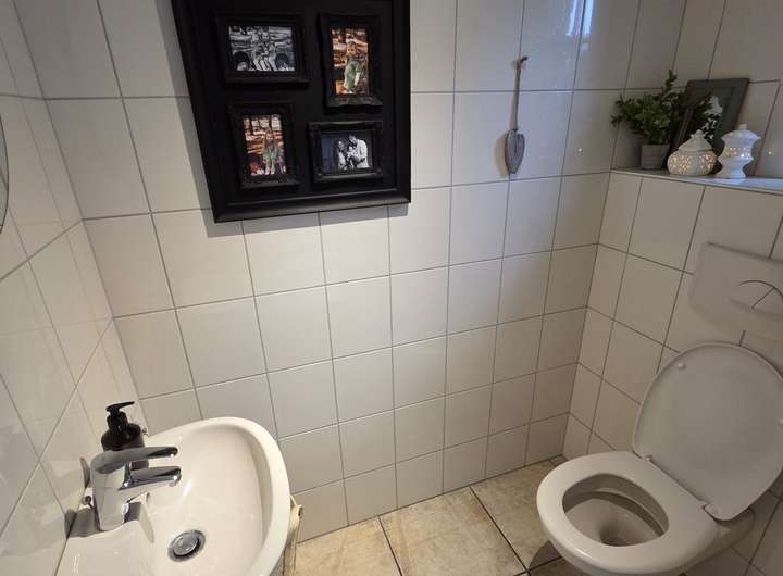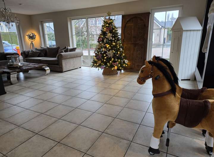 Der Boden ist mit schöne Fliesen mit Fußbodenheizung versehen.