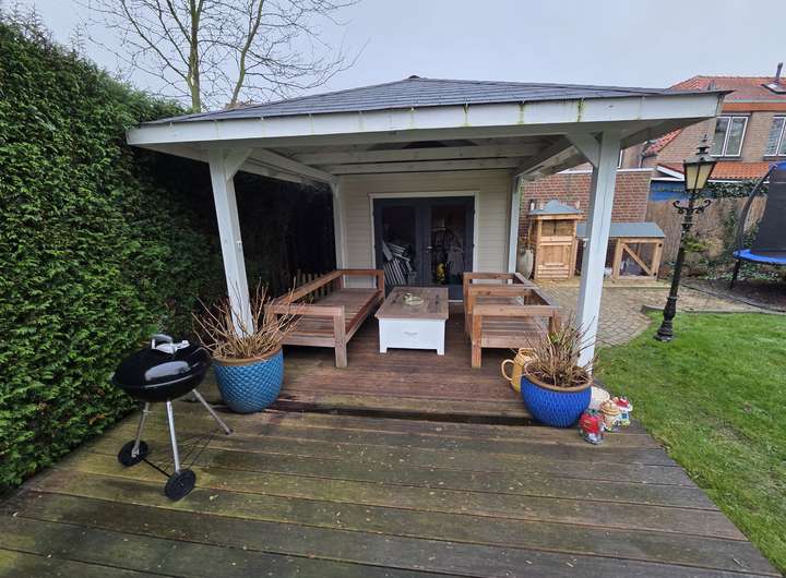 Garten: Holzgartenhaus, Terrasse, Bewässerungsanlage, usw.