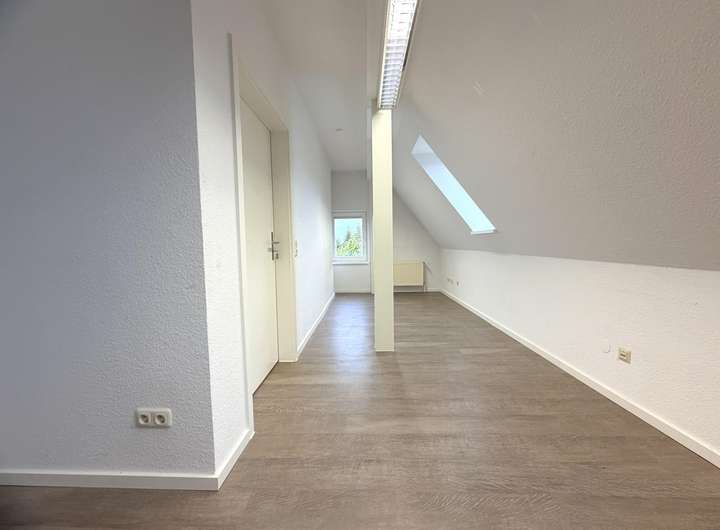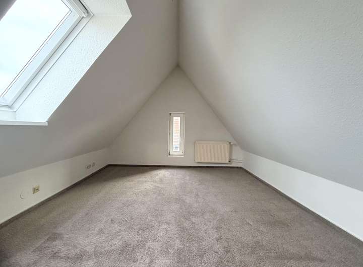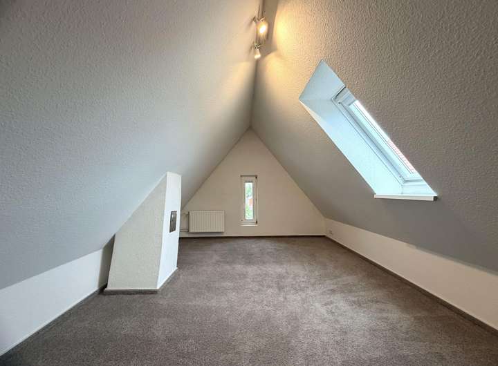 Das Dachgeschoss verfügt über ein geräumiges Schlafzimmer mit integrierter Ankleide, ein Kinderzimmer, ein Durchgangszimmer sowie ein modernes Badezimmer und einen Flur.