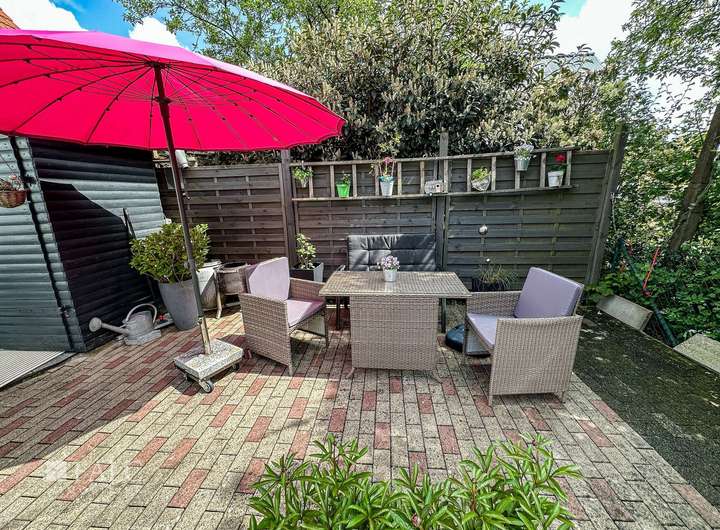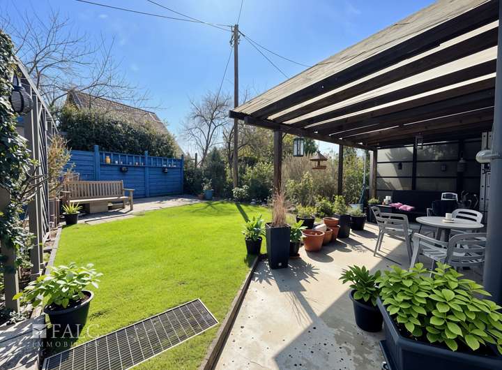 Der gepflegte Garten mit zwei sonnigen Terrassen ist eine wahre Wohlfühloase. Hier können Sie laue Sommerabende verbringen, Blumenbeete anlegen oder den Kindern beim Spielen zusehen. Ein kleiner, aber funktionaler Keller sorgt für zusätzlichen Stauraum und beherbergt die moderne Gas-Zentralheizung – effizient und zukunftssicher.