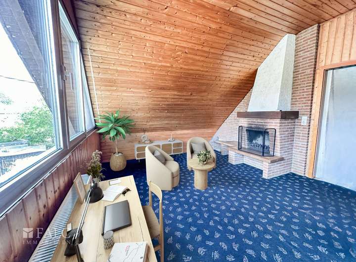 Die durchdachte Raumaufteilung bietet vielseitige Nutzungsmöglichkeiten: Vier großzügige Schlafzimmer schaffen Rückzugsorte für jedes Familienmitglied, während zwei Badezimmer und zwei Küchen komfortables Wohnen auf zwei Ebenen ermöglichen – ideal auch für Mehrgenerationenwohnen oder die Kombination aus Wohnen und Vermieten. Das separate Esszimmer lädt zu geselligen Familienmahlzeiten ein, und im weitläufigen Wohnzimmer genießen Sie entspannte Stunden in behaglicher Atmosphäre.