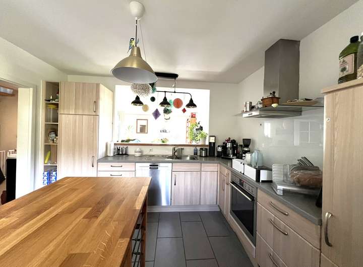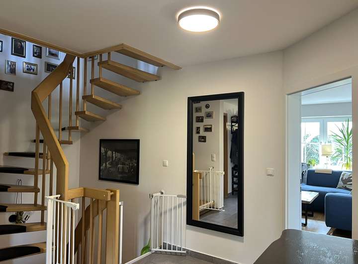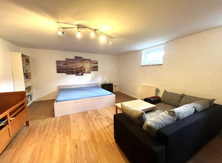 Im Erdgeschoss befindet sich ein großzügiges, lichtdurchflutetes Wohnzimmer inklusive des Essbereiches, das durch eine angenehme Raumaufteilung eine gemütliche Atmosphäre bietet. Direkt angrenzend befindet sich die gut ausgestattete Einbauküche. Die praktische Durchreiche von der Küche ins Wohnzimmer sorgt für einen fließenden Übergang zwischen den beiden Räumen und ermöglicht gleichzeitig eine komfortable Kommunikation und ein bequemes Servieren von Speisen. Ein Gäste-WC rundet das Raumangebot auf dieser Ebene ab. Besonders hervorzuheben ist der ausgebaute Kellerbereich, der bereits als zusätzlicher Wohnraum genutzt wird und daher vielseitig einsetzbar ist – sei es als Arbeitszimmer, Hobbyraum oder für Gäste.