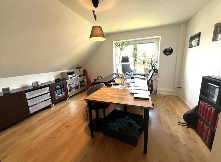 Ein weiteres Highlight der Immobilie ist der ausgebaute Dachboden. Hier befindet sich ein zusätzlicher Raum, der durch seine flexible Nutzungsmöglichkeiten sowohl als Arbeitszimmer, Spielzimmer oder als zusätzlicher Stauraum genutzt werden kann. Das Haus kann auch möbliert angemietet werden.