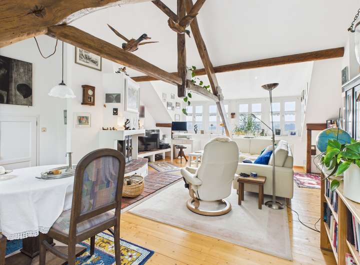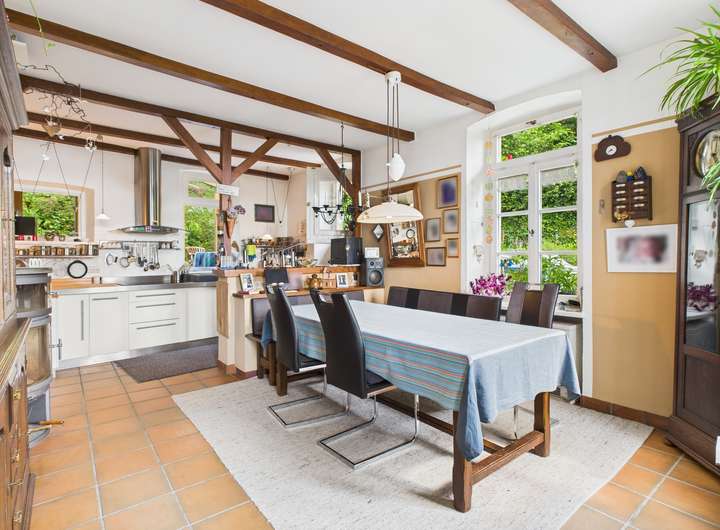 - Renoviert: Dachfenster 2023, Bad mit Fußbodenheizung, Gäste-WC 2022, Sauna, historische Treppe