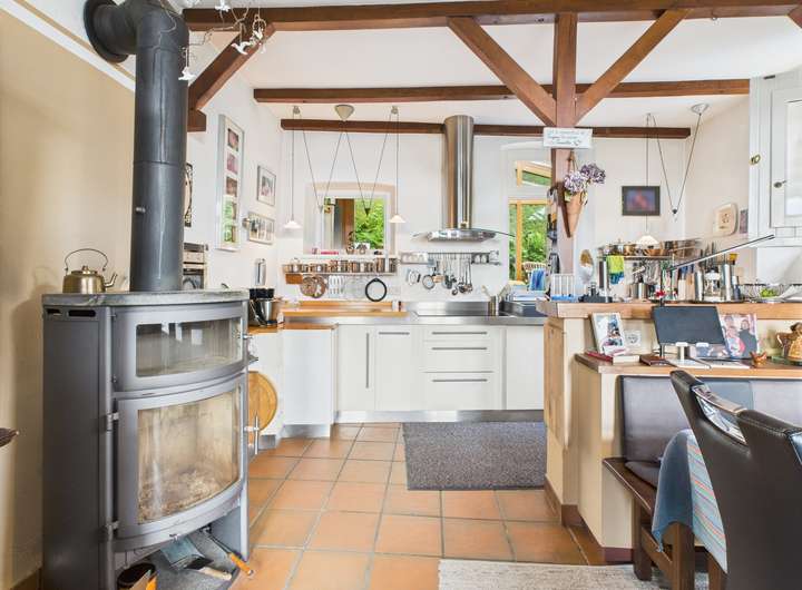 Das Haus bietet ca. 160m2 Wohnfläche, verteilt auf drei Etagen, sowie eine ca. 55m2 große Scheune. Die vielen stilvollen Renovierungen, darunter neue Dachfenster (2023), ein hochwertig saniertes Bad mit Fußbodenheizung, eine historische Holztreppe und eine Sauna, verleihen dem Haus besonderen Charakter und Komfort.