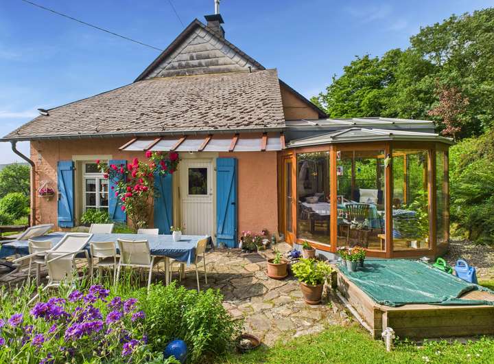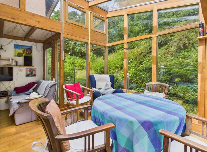 Wohngefühl mitten im Grünen, Weitblick aus jedem Zimmer, ein Wintergarten, ein offener Kamin und die Möglichkeit, Wohnen und Natur perfekt zu verbinden.