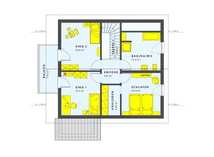 Finanzielle Unterstützung erhältst du durch das Zuhause-Darlehen, das dir bis zu 250.000 EUR zu besonders günstigen Konditionen bietet, sodass du dir dein Traumhaus ohne finanzielle Sorgen erfüllen kannst.