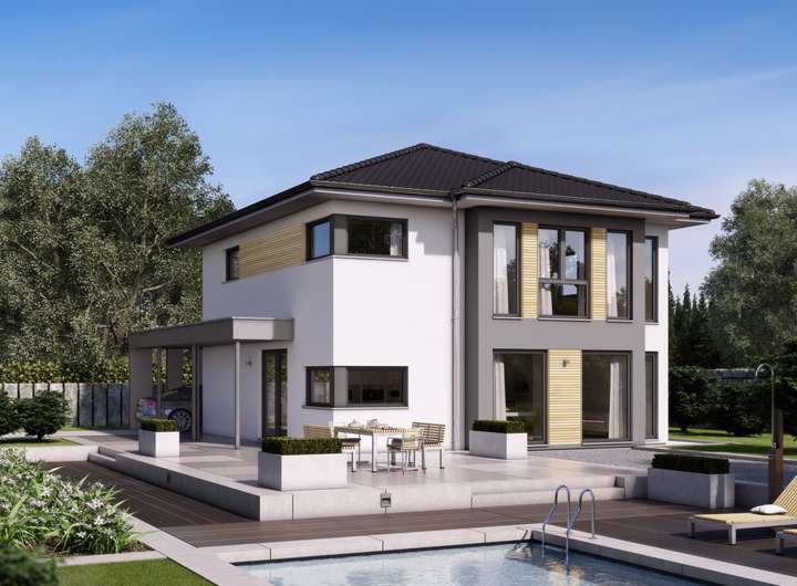 Willkommen in deinem zukünftigen Zuhause in Aukrug, einer Stadtvilla im Landhausstil, die deinen Vorstellungen und Wünschen gerecht wird. Dieses großzügige Fertighaus bietet dir mit 6 Zimmern und einer Wohnfläche von 177,02 m² jede Menge Platz für deine Familie. Das Walmdach sorgt nicht nur für ein ansprechendes Äußeres, sondern verleiht auch dem Obergeschoss eine beeindruckende Raumhöhe, die dir viel Gestaltungsfreiraum ermöglicht. Zusätzliche Wohnraumvergrößerungen sorgen für noch mehr Licht und Platz, sodass du dich in deinem neuen Zuhause rundum wohlfühlen kannst.