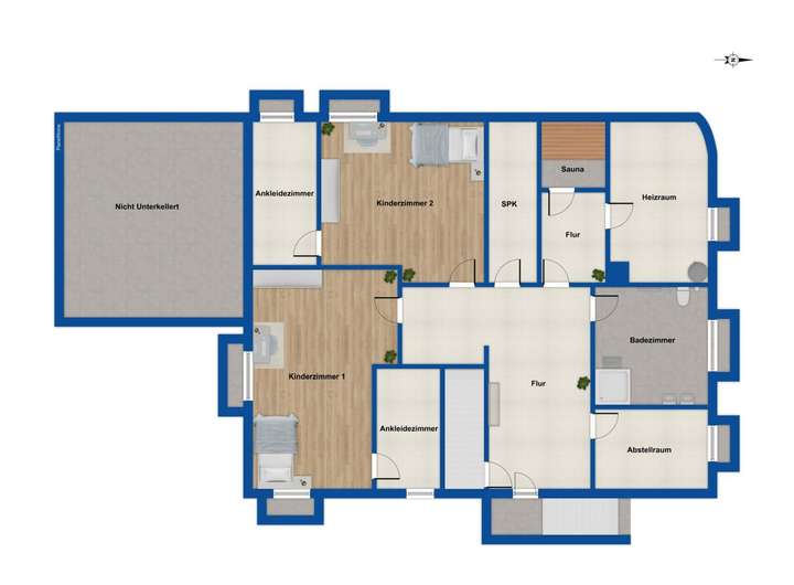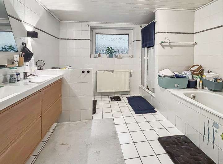Das Haus befindet sich in einem gepflegten, dem Alter entsprechend guten Zustand. Auf allen Etagen wurde ca. 2024 der Grundriss verändert: Ein großzügiger, offener Wohn- und Essbereich ist u.a. entstanden. Der voll ausgebaute Wohnkeller erweitert die nutzbare Fläche erheblich. Hier befinden sich mehrere Kinderzimmer, ein Arbeitszimmer, Sauna sowie ein Hauswirtschaftsraum, wodurch dieser Bereich ideal für Familien und Homeoffice-Situationen geeignet ist. Im Obergeschoss stehen aktuell zwei weitere Zimmer zur Verfügung. Zusätzlich besteht die Möglichkeit, den verbleibenden Dach- bzw. Obergeschossbereich weiter auszubauen, um zusätzliche Wohnfläche zu schaffen und den Grundriss nach eigenen Vorstellungen zu erweitern.