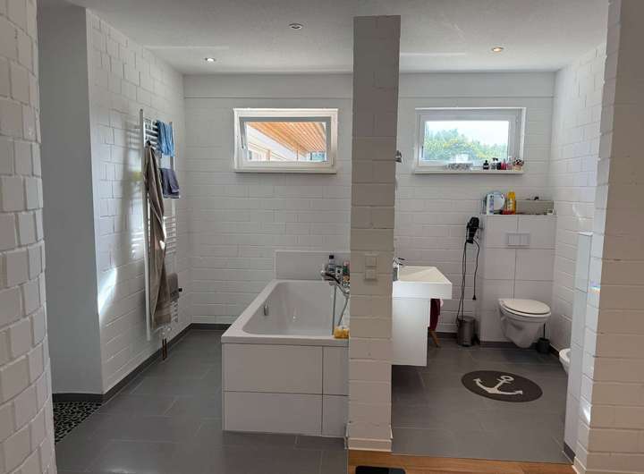 • Sehr großes Badezimmer mit Dusche, Badewanne, Bidet, WC + Gäste WC