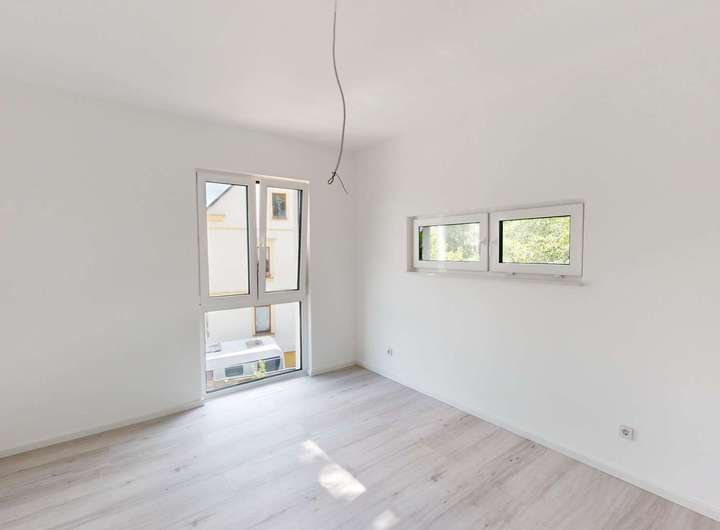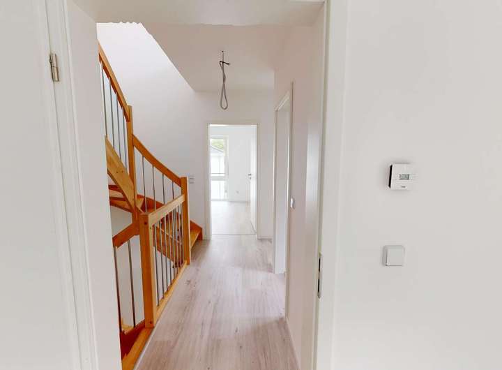Im Erdgeschoss erwartet Sie ein einladender Eingangsbereich mit Garderobe, ein praktischer Hauswirtschaftsraum, ein Gäste-WC sowie ein großzügiger Wohn- und Essbereich mit offener Küche. Von hier aus gelangen Sie direkt auf die Terrasse und in den eigenen Garten. Das 1. Obergeschoss der Reihenendhäuser bietet ein großes Schlafzimmer mit Ankleide, zwei weitere vielseitig nutzbare Zimmer (als Kinder-, Gäste- oder Arbeitszimmer) sowie ein modernes Badezimmer mit Handtuchheizkörper. Im Reihenmittelhaus finden Sie auf dieser Etage zwei Zimmer, einen großen Abstellraum und ein Bad mit Handtuchheizkörper. Im 2. Obergeschoss des Reihenmittelhauses erwartet Sie ein weiteres, geräumiges Schlafzimmer mit Ankleide, ein zweites Bad mit Handtuchheizkörper und eine großzügige Dachterrasse. Dank der versetzten Bauweise sind die Dachterrassen nicht einsehbar und bieten somit ein hohes Maß an Privatsphäre. Alle Zimmer sind von den zentralen Fluren aus begehbar.