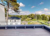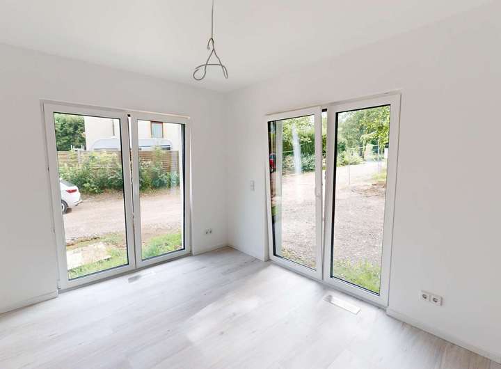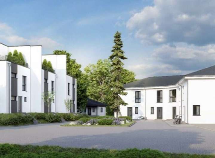 Die Außenanlagen werden liebevoll gestaltet, Stellplätze sind selbstverständlich vorhanden. Die gesamte Wohnanlage ist umzäunt und von der Straße aus nicht einsehbar. Neben diesen drei Reihenhäusern entstehen hier auch eine weitere Reihenhausanlage mit fünf Einheiten sowie ein Bungalow – ebenfalls zur Miete erhältlich.