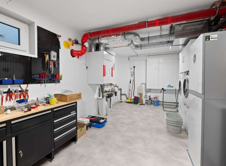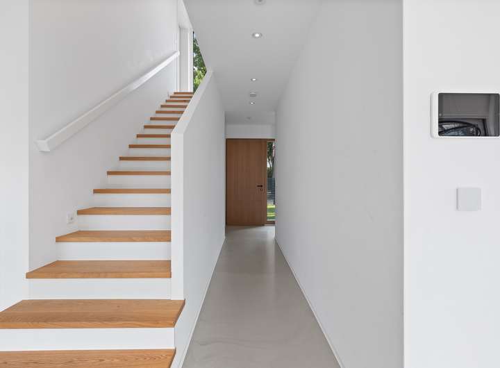 Das gesamte Haus ist smarthomegesteuert über LOXONE – für maximale Kontrolle, Komfort, Energieeffizienz und Sicherheit. Für ein perfektes Licht- und Raumklima sorgen zudem elektrische Raffstores, mit denen sich alle Wohnräume flexibel abdunkeln lassen.