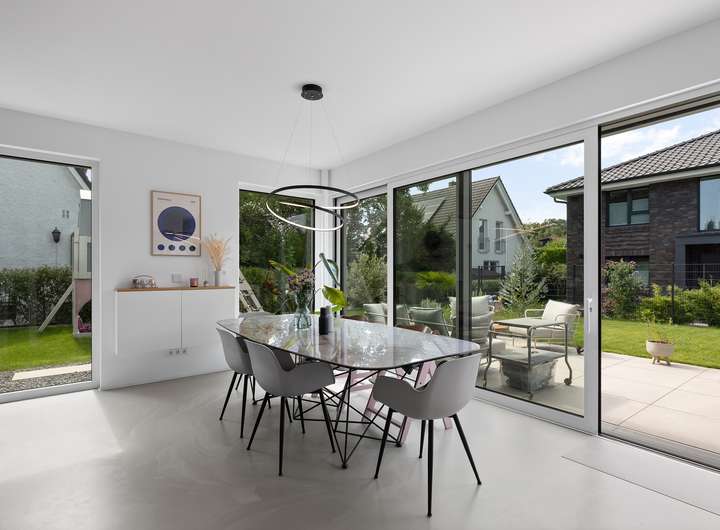 Dieses exklusive Neubau-Einfamilienhaus vereint klare Linien, durchdachte Raumkonzepte und luxuriöse Ausstattung auf rund 257 m² Wohn-/Nutzfläche.