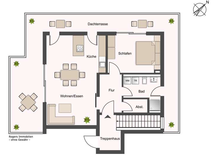 Mit einer Wohnfläche von ca. 81,25 m² erwartet Sie hier ein lichtdurchflutetes Zuhause, das keine Wünsche offen lässt. Ein besonderes Highlight: Bei dieser Wohnung handelt es sich um eine begehrte Eckwohnung, die nach drei Himmelsrichtungen ausgerichtet ist und dadurch den ganzen Tag über mit natürlichem Licht durchflutet wird. Die umlaufende Dachterrasse von ca. 21,62 m² (anteilig 50 %) umschließt die Wohnung und lädt zum Verweilen unter freiem Himmel ein. Sie bietet Ihnen einen privaten Rückzugsort mit Weitblick und die Möglichkeit, die Sonne zu verschiedenen Tageszeiten aus unterschiedlichen Perspektiven zu genießen.