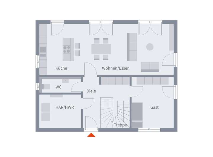 Dieser Architektenentwurf ist ein Planungsvorschlag und dient der Inspiration und Orientierung. Grundrisse, Architektur-Extras, Ausbau- und Effizienzhaus-Stufen werden individuell an Ihre Wünsche und Bedürfnisse angepasst.