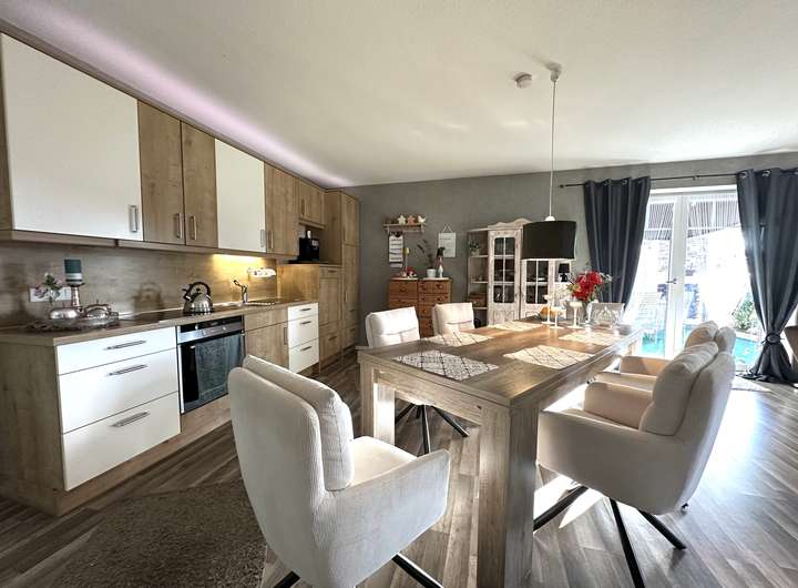Das zum Verkauf stehende Einfamilienhaus aus ca. 2014 präsentiert sich in einem sehr guten Zustand, das Ihnen die Möglichkeit schenkt, direkt einziehen zu können. Schon beim Betreten fällt die hohe Wohnqualität auf, die durch eine moderne Fußbodenheizung, hervorragend isolierte Außenwände und eine solide Bauausführung unterstrichen wird. Die extra breiten Türen und die begehbaren Duschen verleihen dem Haus nicht nur eine klare Großzügigkeit, sondern bieten zugleich ein hohes Maß an Komfort und Barrierefreiheit. Die Räume sind weitläufig gestaltet und ermöglichen eine individuelle Nutzung, ganz gleich ob für eine Familie, Paare oder Menschen mit besonderen Platzansprüchen.