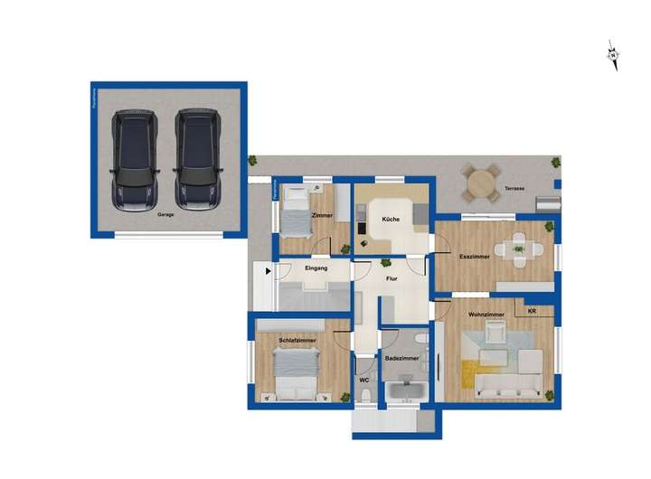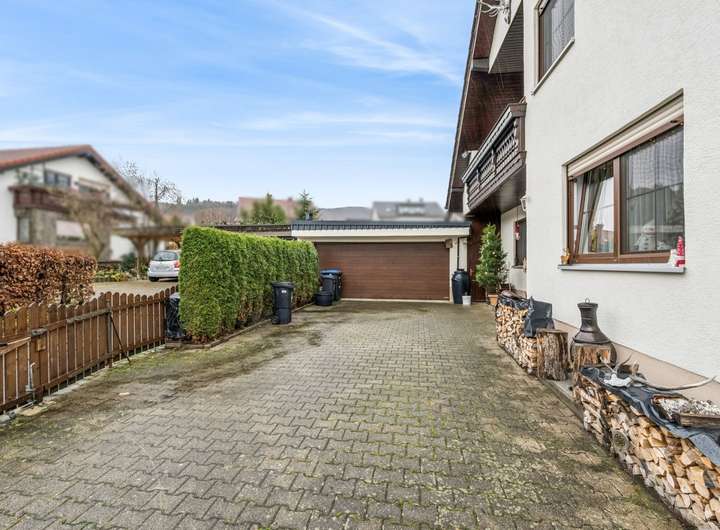 Das ca. 450 m² große Grundstück bietet genügend Platz für Erholung im Freien, Gartenideen oder gemütliche Stunden im Grünen. Eine Doppelgarage sorgt für komfortables Parken sowie zusätzliche Abstellfläche.
