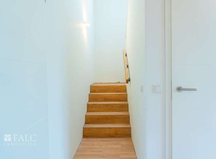 Über eine stilvolle Treppe erreichen Sie das Obergeschoss, wo sich die privaten Räume befinden. Hier erwarten Sie drei geräumige Schlafzimmer, die flexibel als Kinder-, Gäste- oder Arbeitszimmer genutzt werden können. Die Zimmer sind so gestaltet, dass sie viel natürliches Licht bieten und eine angenehme Atmosphäre schaffen.