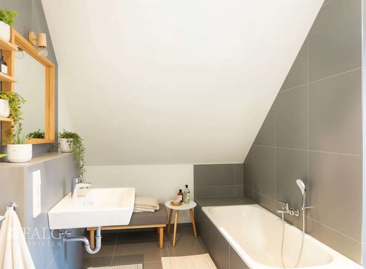 Das Hauptbadezimmer auf dieser Etage ist mit einer Badewanne, einer Dusche und modernen Armaturen ausgestattet, ideal für entspannende Momente nach einem langen Tag.