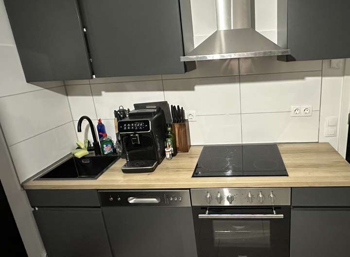 Die auf dem Bild abgebildete EBK und der Kühlschrank können vom Vormieter für 1.500 € käuflich erworben werden.