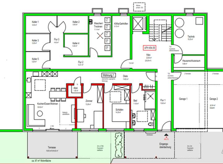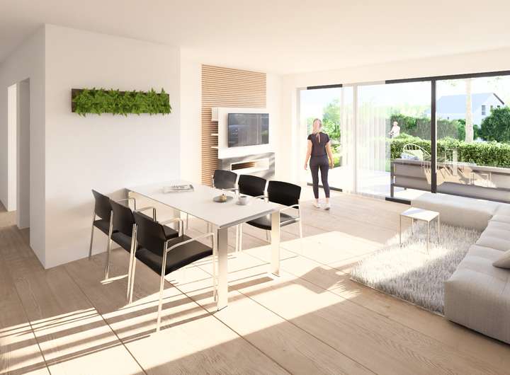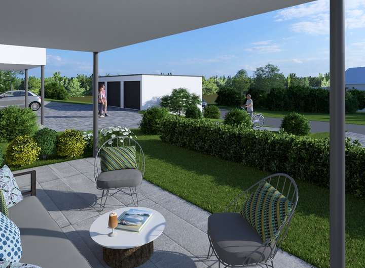 Durchdachte Details – vom Aufzug über barrierefreie Zugänge bis hin zu privaten Gartenanteilen – machen das Gebäude zu einem Wohnort, der langfristig überzeugt. Ergänzt wird das Ensemble durch eine stilvolle Außenanlage mit Garagen, Stellplätzen sowie separaten Fahrrad- und Mülleinhausungen, die das Gesamtbild abrunden und dem Projekt eine klare, gepflegte Struktur verleihen.