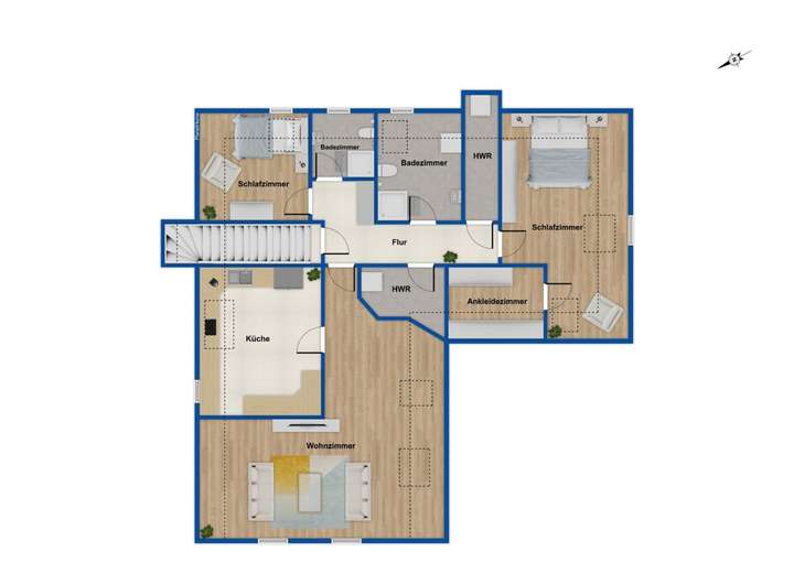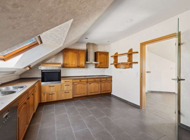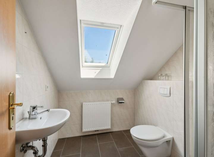 Das Dachgeschoss wurde ca. im Jahr 2012 vollständig ausgebaut und bietet eine eigenständige Wohneinheit mit zwei Schlafzimmern, einem Wohnzimmer sowie einer weiteren Küche. Ein modernes Badezimmer und ein Gäste-WC sowie zwei praktische Abstellräume sorgen für ausreichend Stauraum und Flexibilität. Das größere der beiden Schlafzimmer verfügt zusätzlich über ein eigenes Ankleidezimmer.