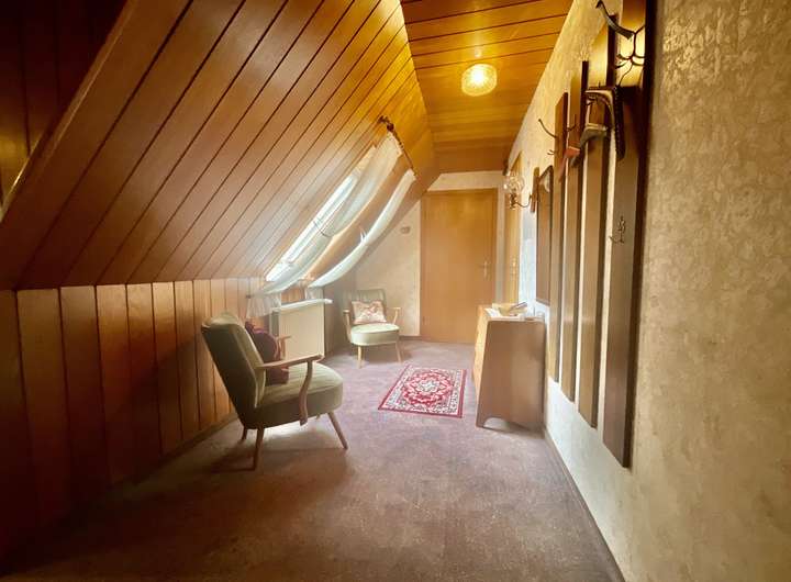 Der Aufbau des Hauses bietet eine klare räumliche Trennung zwischen den Etagen im Erdgeschoss und Dachgeschoss. Ein zweiter Eingangsbereich ermöglicht einen idealen Zugang zum Dachgeschoss, das sich hervorragend als mögliche zweite Wohneinheit eignet – ideal für ein Mehrgenerationenhaus.