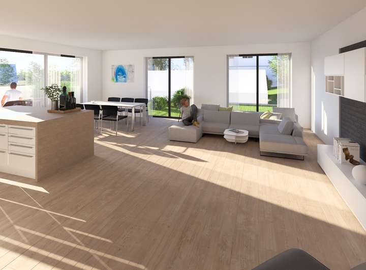 Die Architektur stellt den Wohnkomfort in den Mittelpunkt. Großzügige Fensterflächen schaffen helle, offene Räume und geben den Blick nach Süden und Süd-Westen frei. Wohn-, Ess- und Kochbereiche sind bewusst so orientiert, dass sie die natürliche Belichtung optimal nutzen und ein lebendiges, freundliches Wohngefühl erzeugen. Tageslichtbäder, funktional gestaltete Grundrisse und die hochwertige Ausstattung unterstreichen den Anspruch eines Hauses, das gleichermaßen elegant wie alltagstauglich ist.