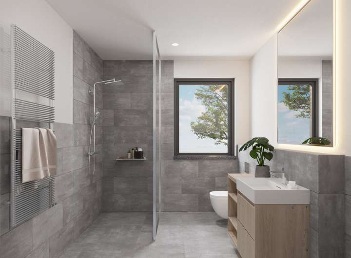 Hochwertiges Bad: bodengleiche Dusche, moderne Armaturen