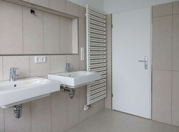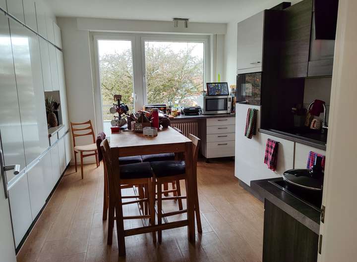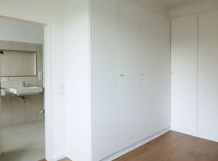 Die Einbauküche ist bereits vorhanden und fügt sich stimmig in das Gesamtbild der Wohnung ein. Sie kann vom zukünftigen Mieter gegen einen kleinen Abschlag übernommen werden. Direkt an die Küche anschließend befindet sich ein praktischer Abstellraum. Zusätzlich ist auf der Wohnebene ein separater Hauswirtschaftsraum integriert, der Platz für Waschmaschine und Trockner bietet und darüber hinaus Raum für Wäschepflege, Wäscheständer und ergänzende Aufbewahrung lässt.