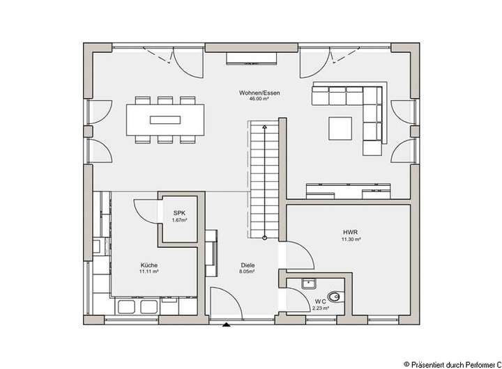 Willkommen im persönlichen Wohntraum! Das Familienhaus Melia verspricht offenes Wohnen mit viel Platz für jedes Familienmitglied.