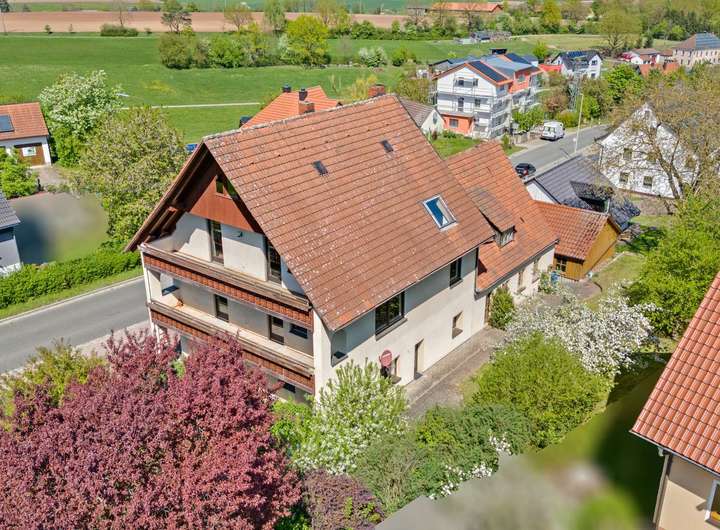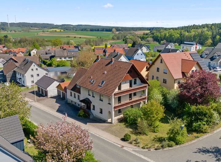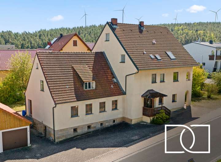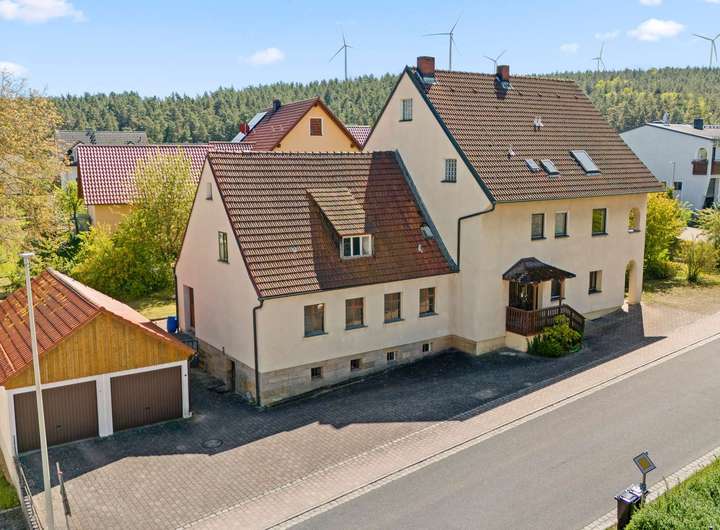 Wer naturnahes Wohnen mit viel Platz und vielseitigen Nutzungsmöglichkeiten verbinden möchte, findet hier ein außergewöhnliches Zuhause: Dieses großzügige Zweifamilienhaus mit Werkstatt liegt idyllisch und ruhig im Gemeindeteil Seidwitz bei Creußen – und ist sofort bezugsfertig. Zwei Wohneinheiten sind sofort nutzbar, eine weitere lässt sich bei Bedarf ausbauen. Die sehr gute Bausubstanz, eine große Doppelgarage, zahlreiche Stellplätze und die angeschlossene Werkstatt eröffnen ideale Bedingungen für Familien, Selbstständige oder Handwerksbetriebe, die Wohnen und Arbeiten kombinieren möchten.