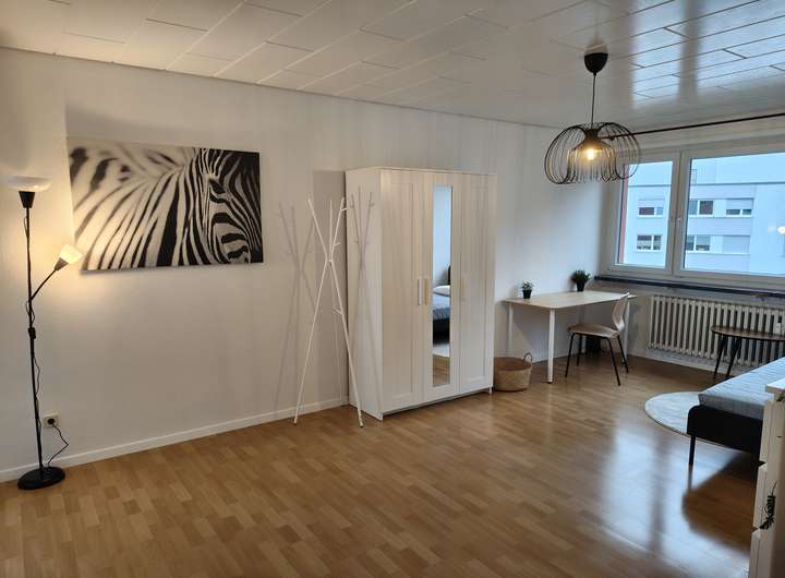 Fully furnished, bright room available in a 4-person shared apartment in Grenzach-Wyhlen. The apartment features a fully equipped kitchen including washing machine, a renovated bathroom, a separate toilet, and a spacious balcony. The room is ideal for commuters, expats, or students who work/study in the border region or Switzerland. The apartment is located approximately 1.5km from the Swiss border and bus no. 38 stops right in front of the building. The train station and various shopping facilities are within walking distance, and parking is available on the side street.