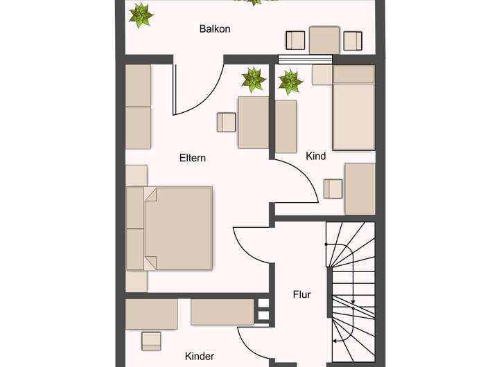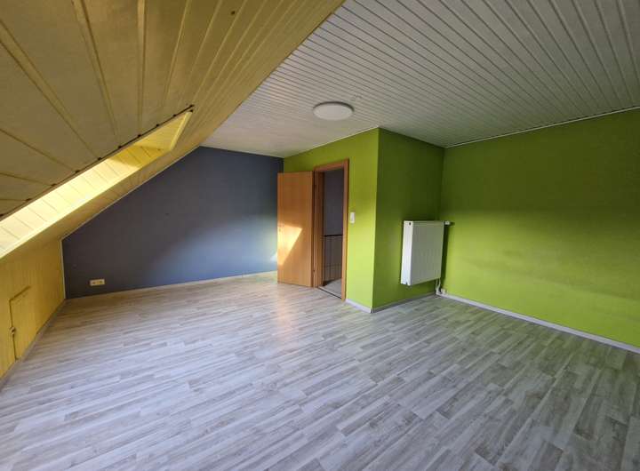 Das Dachgeschoss ist ausgebaut und besteht aus zwei weiteren Zimmern und einem Flur.