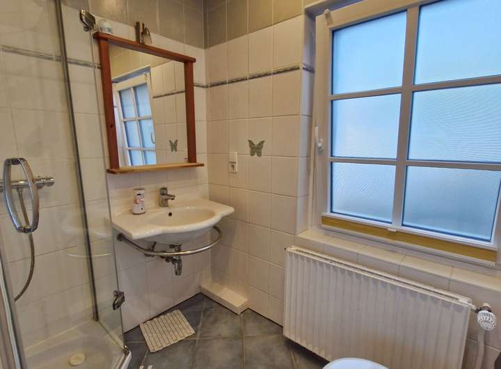 Neben einem neuen Sicherungskasten mit FI-Schutzschalter und Kippsicherungen wurde die Elektrik erneuert, im Innenbereich die Zimmertüren und -zargen ausgetauscht und das Bad sowie Gäste-WC modernisiert.