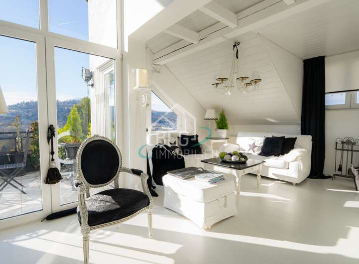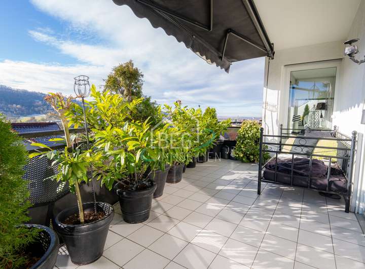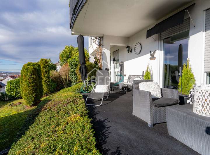Ein besonderes Highlight ist die schöne Aussichtslage mit Blick auf die umliegende Hügellandschaft, bis nach Fellbach. Die Räume sind durchweg hell und gut geschnitten, was in Verbindung mit den verschiedenen Außenbereichen – Balkonen, Terrassen und Gartenanteil – ein angenehmes Wohnklima schafft.