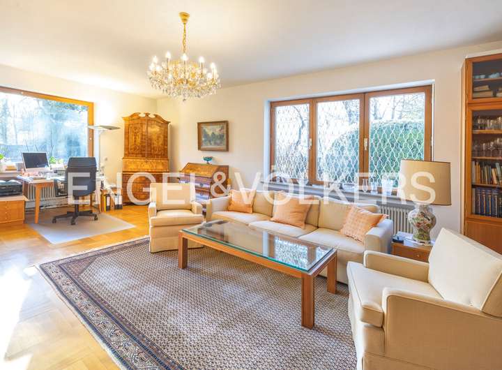 Zum Verkauf steht ein elegantes und architektonisch anspruchsvolles Haus in begehrter, grüner Lage von Gröbenzell. Dieses Architektenhaus liegt eingebettet in ein parkähnliches Grundstück – ein Highlight für jede Familie. Beim Bau wurde kompromisslos auf Qualität gesetzt, was sich bis in die Details der Bauzeichnungen für die Eichenfensterriegel zeigt. Kosten wurden nicht gescheut.