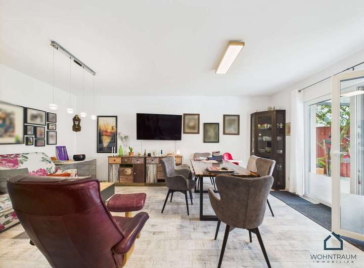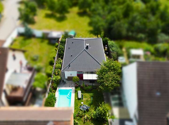Barrierefrei, auf einer Ebene und mit ca. 95 m² Wohnfläche bietet die Immobilie drei Schlafzimmer, einen offenen Wohn- und Essbereich mit Kamin sowie eine hochwertige Einbauküche. Der ca. 400 m² große Garten mit Terrasse und Pool steht für pure Lebensqualität – im Alltag ebenso wie für Urlaubsgäste mit hohen Ansprüchen.